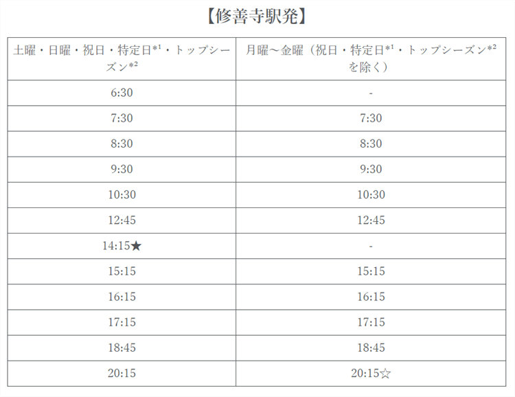 ※送迎バス時刻は電車時刻改正や季節により変更になる場合がございます。