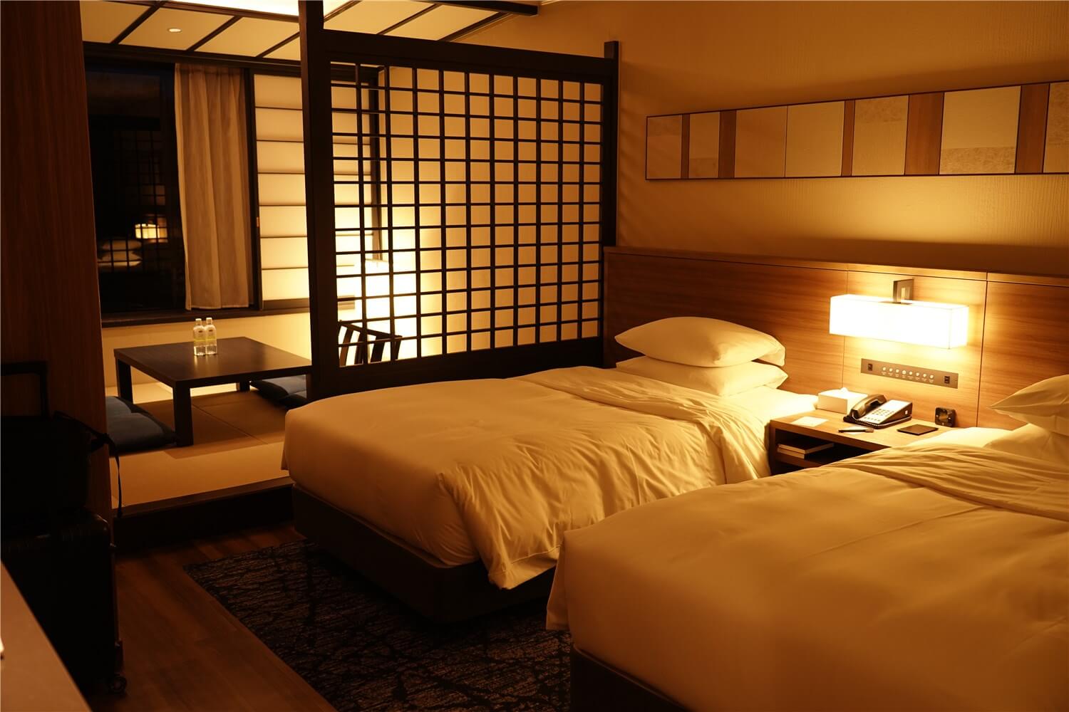 伊豆マリオットホテル修善寺の和洋室 ツインルーム!小上がりの畳がすごいくつろげる!!