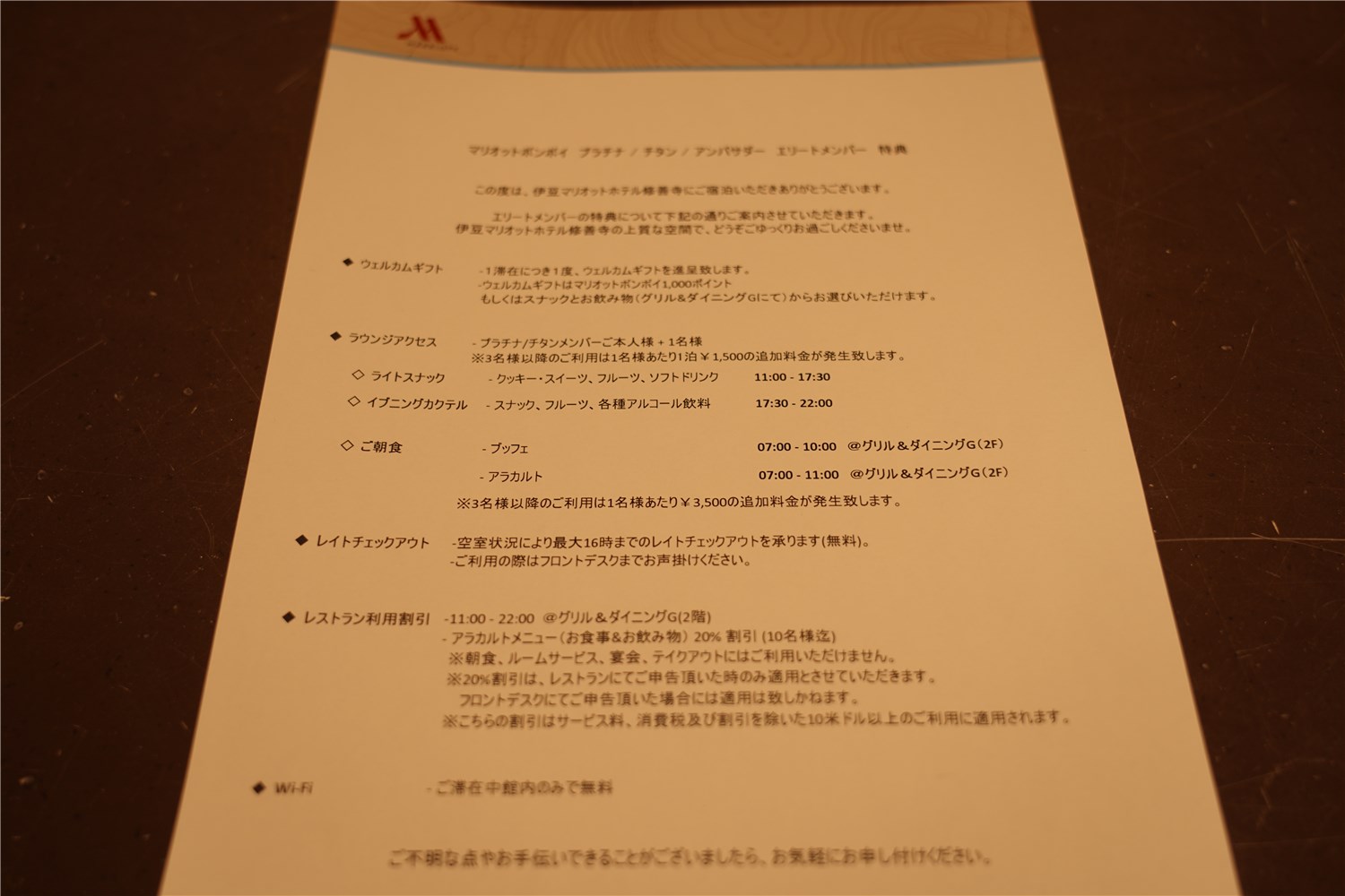 伊豆マリオットホテル修善寺のプラチナエリート、チタンエリートの特典も豊富!!