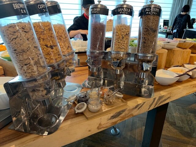 コーンフレーク類も6種類ありとても豊富ですね!!その奥には、サラダもちゃんとあります。