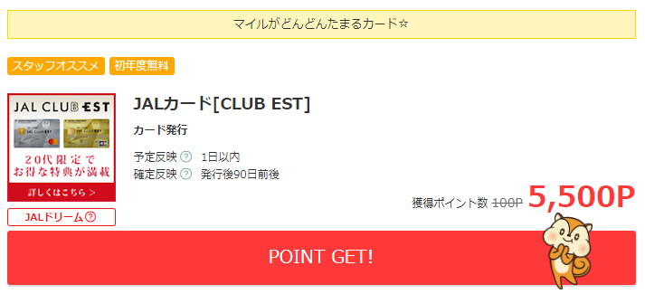 今ならCLUB ESTのJALカード発行完了で5,500ポイントがゲットできる大チャンス!
