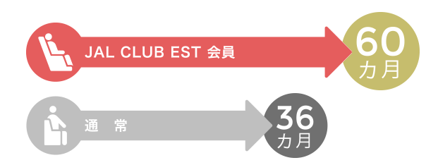 JAL CLUB EST会員になると、マイルの有効期限が通常36カ月(3年)が60カ月(5年)に大幅に延長されます。