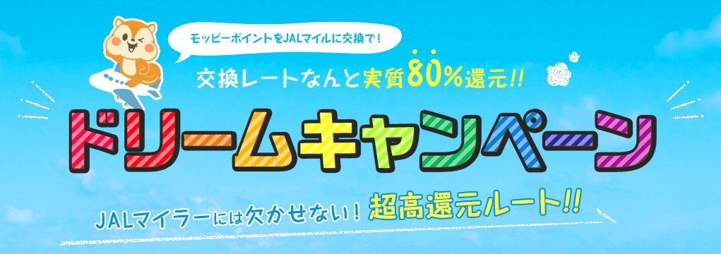 つまり実質80%還元でモッピーのポイントをJALマイルに交換が出来るキャンペーンのことを言います。