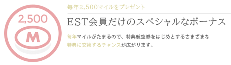 さらにJAL CLUB ESTのすごいところは、毎年2,500JALマイルが付与されるんです!