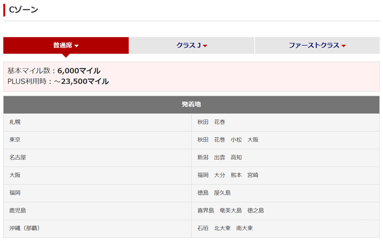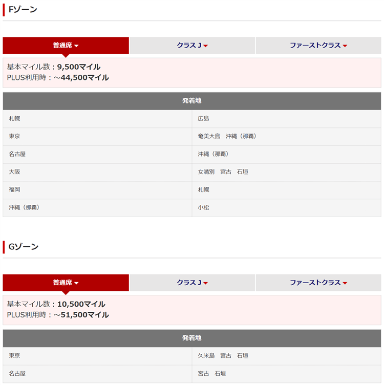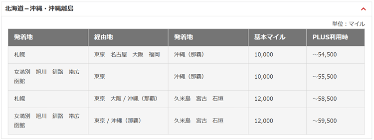 東京-宮古、石垣はなんと10,000マイル→10,500マイルに上がっています。