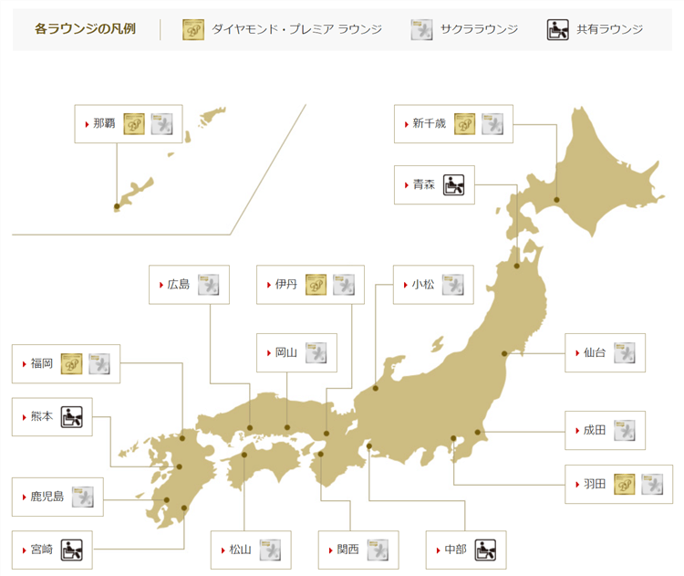 | ダイヤモンド・プレミアラウンジ | 新千歳、羽田、伊丹、福岡、那覇 |