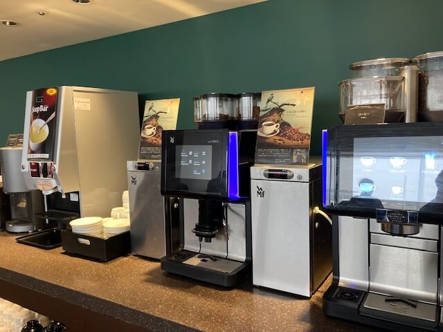 ソフトドリンク以外にも、スープバー、コーヒーマシンなども完備!!