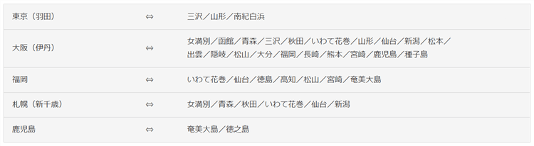 今回のFOP2倍ですが対象路線はJALグループ国内線の全路線が対象となっています。