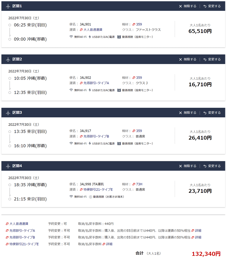 上記は分かりやすく色々な運賃、クラスを混ぜています。