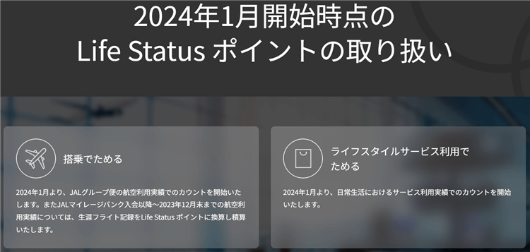 「JAL Life Status プログラム」というのはどちらかというと従来の生涯ステータス(JGCだったりFiveStar)のプログラムの刷新というイメージです。