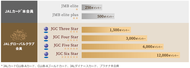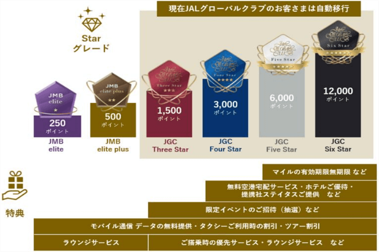 今回の新しい制度の中で言うと「JGC Three Star」以上が該当となります。
