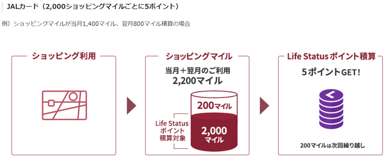 JALカード:2,000マイルにつき5ポイント