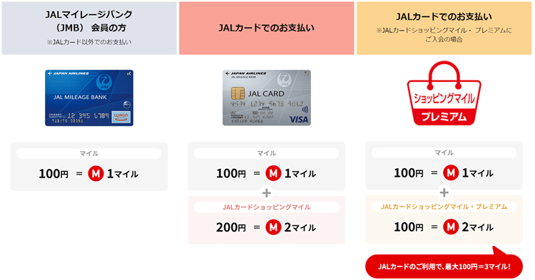 そしてJALカード利用時にはよりマイルが貯まるようになっています。