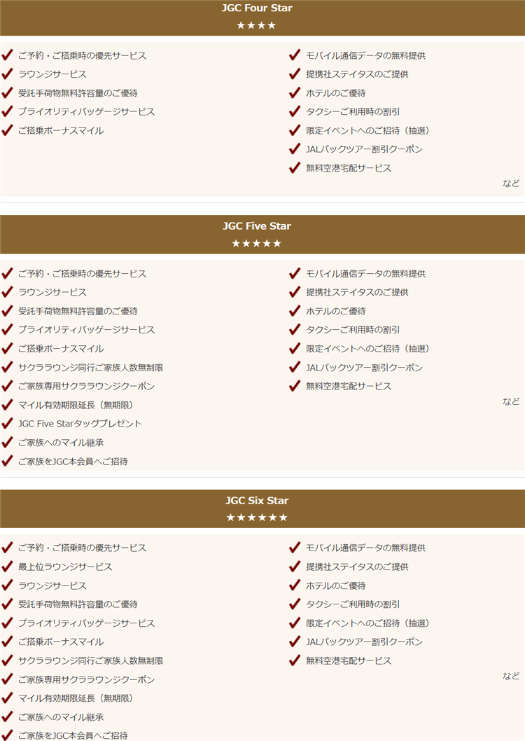 「JGC Three Star」の特典はこちら。