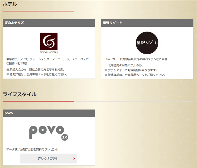 こちらは一部従来からのものもありますが、新しく提携特典として加わったものもあります。