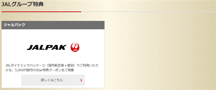 - 共通:JALダイナミックパッケージ(国内航空券+宿泊)5,000円割引のStar特典クーポン