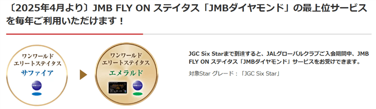 こちらは2025年4月からとなりますが、なんとJMBダイヤモンドのサービスが毎年利用可能となります。