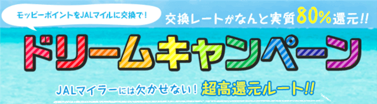 モッピーから直接JALマイルへ交換80%レート!!ドリームキャンペーンを活用しよう!