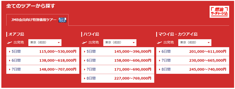 そうなってくるとJALのサーチャージより少し高い金額で旅行が可能というわけです。