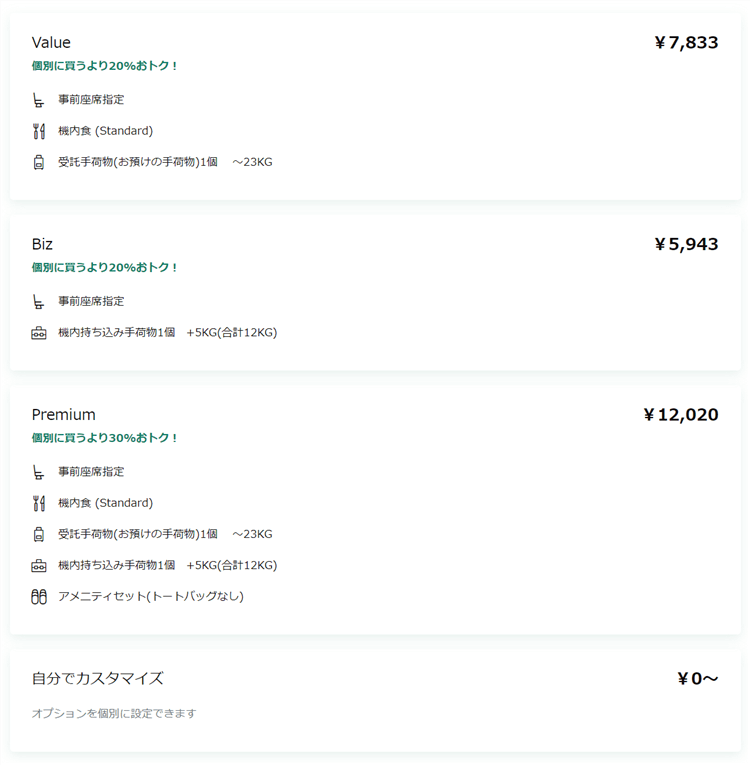 ※手荷物の預け入れ、機内食の購入等には付帯サービス料金が別途必要です。