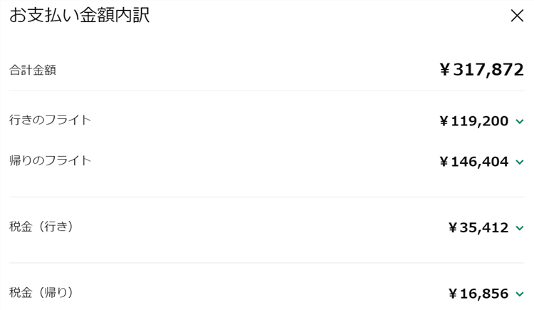 | 税金、サーチャージ | 298,870円 | 52,268円 |