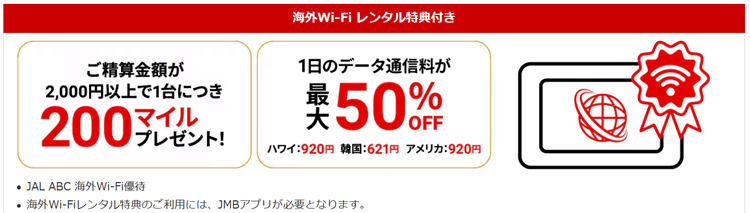 こちらはJALが提供している海外Wi-Fiサービスですが、そちらの割引特典もついてきますよ!