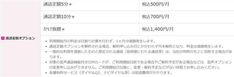 まずメインとして利用するなら音声SIMの契約と状況に応じて通話定額を付ける想定になるでしょう。