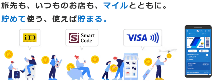 こちらもJAL Payと同じくANAマイレージクラブ アプリで使える、スマートフォン決済サービスとなります。
