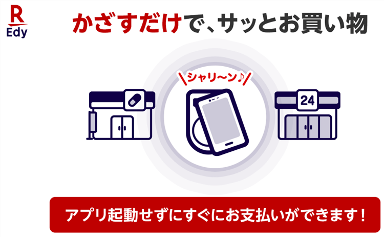 楽天Edyは、お買い物のお支払いで使える電子マネーです。おサイフケータイをお持ちなら、楽天Edyアプリをダウンロードしてご利用いただけます。
