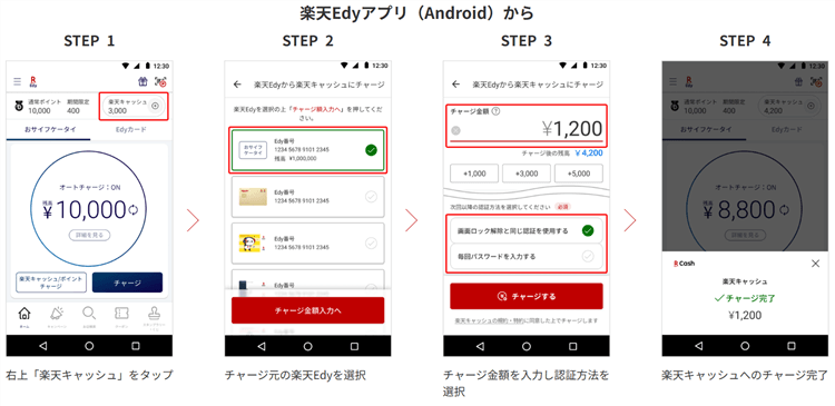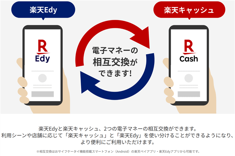 楽天Edyから楽天キャッシュへのチャージですがandroidアプリからしかできません!!