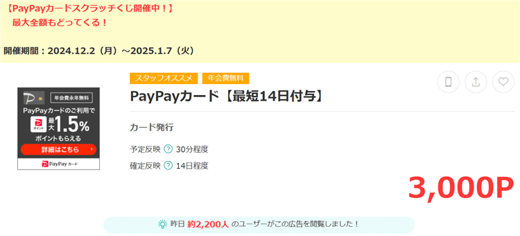 年会費が無料でPayPayユーザーに人気のカードがこちら。基本還元率は1%です。