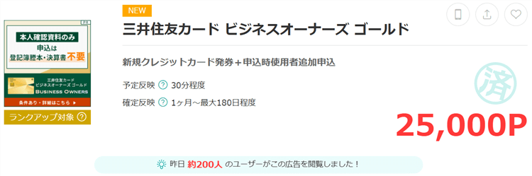 その中でも一番高還元なのが「三井住友ビジネスオーナーズゴールド」です。