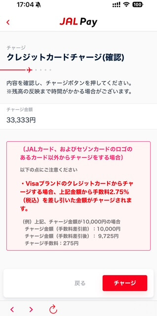 チャージの際には2万円以上でチャージするように気をつけてくださいね!!