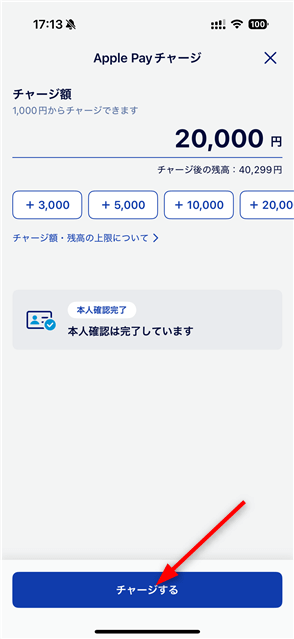 こちらの最終画面で「チャージ」をタップするとチャージが完了しますよ!