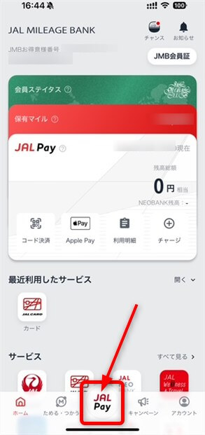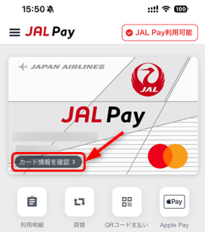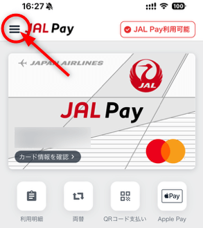 次に画面下のJAL Payの丸いアイコンをタップ。