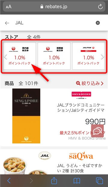 ではJALの全ての商品を扱っているのか?というとちょっと違います。