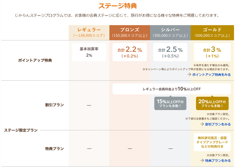 ゴールドステージならポイント3%還元、20%OFF、アップグレードで激アツ!じゃらんnetの「じゃらんステージプログラム」を攻略せよ!
