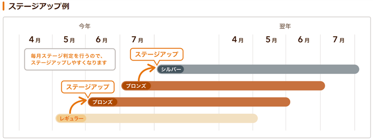 レギュラー、ブロンズ、シルバー、ゴールドとなっており、ゴールドが一番上のステージになっていますよ!