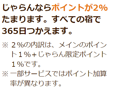 まず基本的なこととしてじゃらんnetを利用した際に利用金額の2%が貯まりますよ!