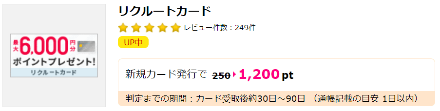 ちなみにリクルートカードですが、こちらも実はハピタス経由で発行するとめっちゃお得です。