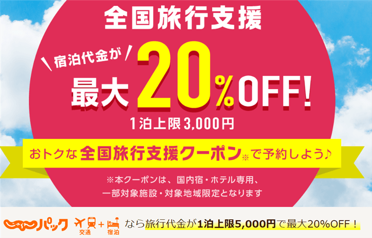 じゃらんなら全国旅行支援も併用できる!!3月28日から国内予約スタート!!