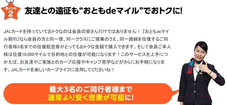 これJALの会員の方もそうですが、同行する家族や友人もお得に旅行や遠征が組めるのでめちゃおすすめのサービスとなっています。