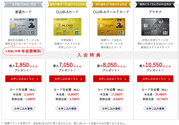 JALマイラーを本気で目指すのであればCLUB-A以上のグレードのカードをおすすめします!!