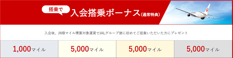 2.今年中にマイル積算対象運賃にてJALグループ便に1回でも乗ればもらえる「入会搭乗ボーナス」