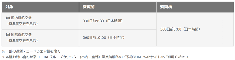 JMBダイヤモンド会員・JGCプレミア会員の方を対象とした国内線先行予約サービスは、ご搭乗日の361日前22:00(日本時間)より承ります。