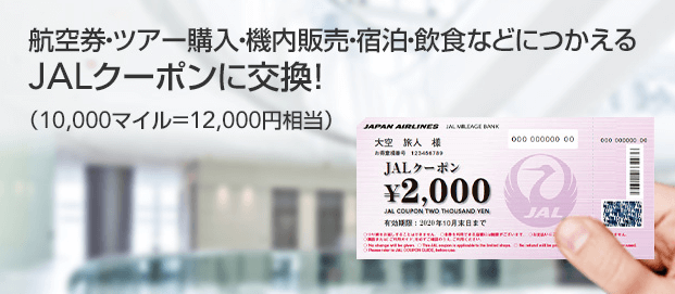 | JTB | 10,000円相当 | 合計2回、20,000マイルまで 有効期限:積算された翌年末まで |