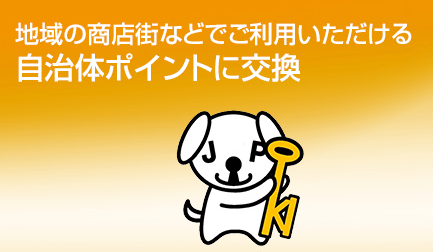 地域の商店街などで利用できる自治会ポイントに交換して、自分の地元で利用することもできます。