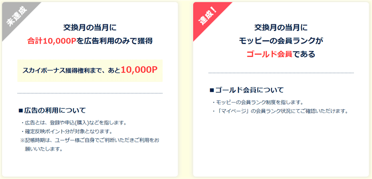- 交換月の当月または、前月の間に合計10,000Pを広告利用のみで獲得