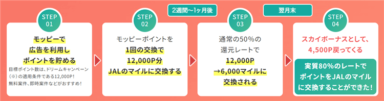 大量JALマイルを稼ぐ秘密はモッピーのドリームキャンペーン!80%で交換が出来る仕組みを解説!!