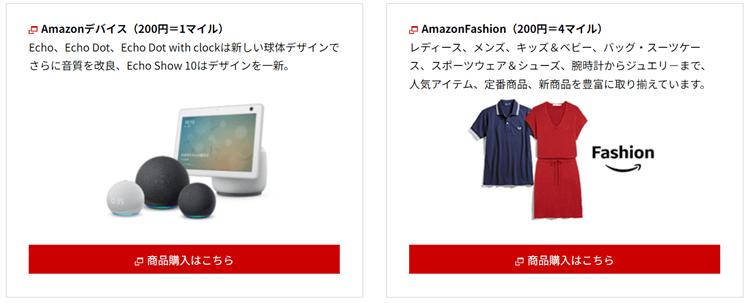 今まではほとんどの商品(Amazonギフト券でも!)で一律に200円利用で1マイルだったのですが、今後は対象商品のみ付与という形に改悪されております。